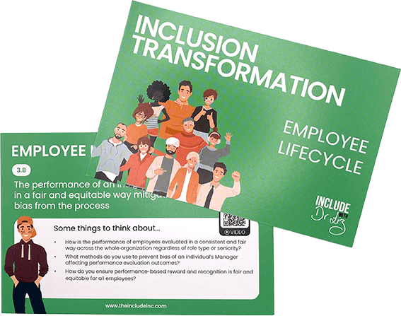 In the toolkit there are 38 cards outlining inclusive best practice with explainer videos to prompt evaluation, discussion, and action planning for inclusion transformation.