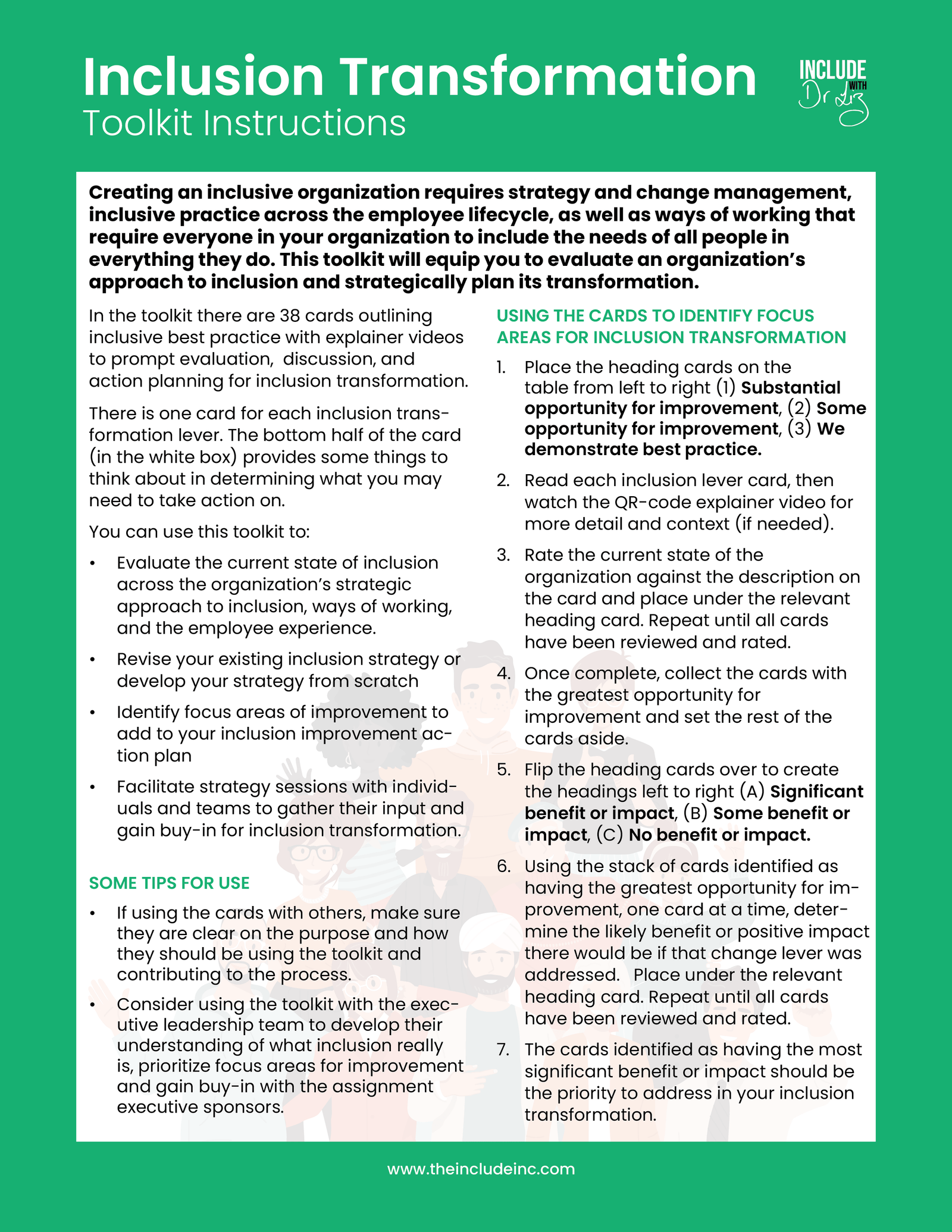 The Inclusion Transformation toolkit will equip you to evaluate an organization’s approach to inclusion and strategically plan its transformation.